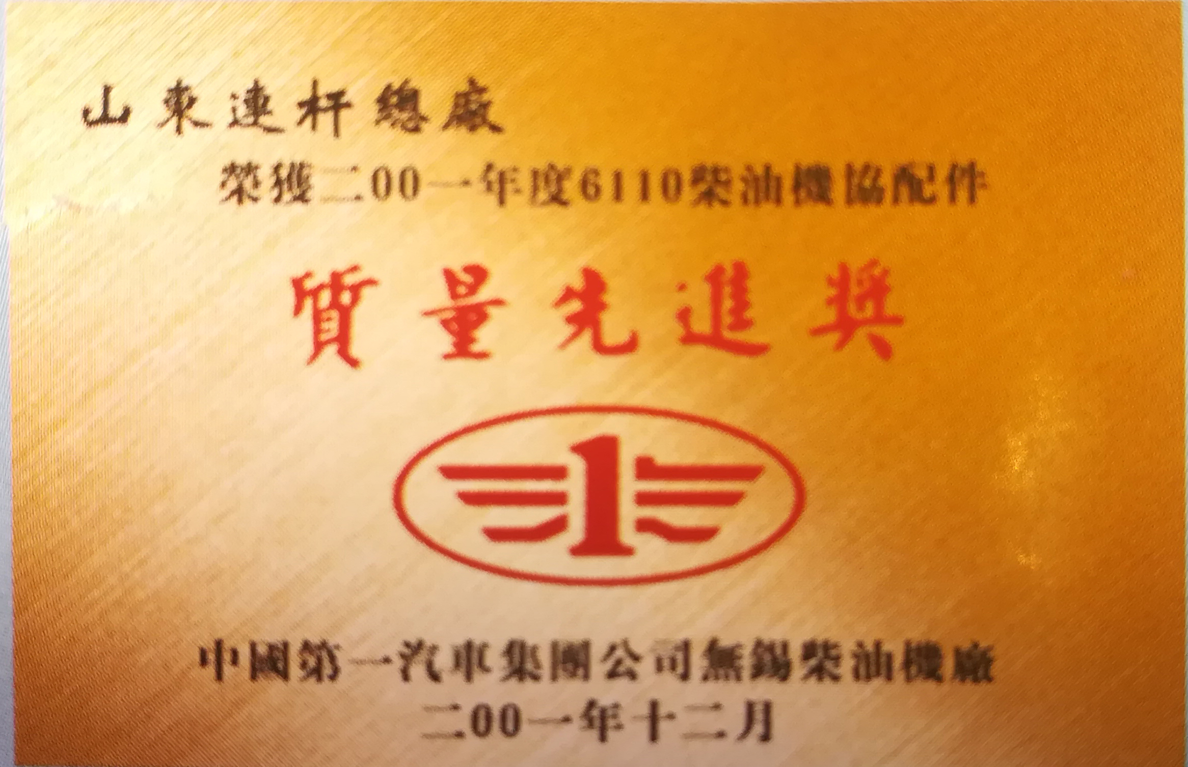2001锡柴质量先进奖